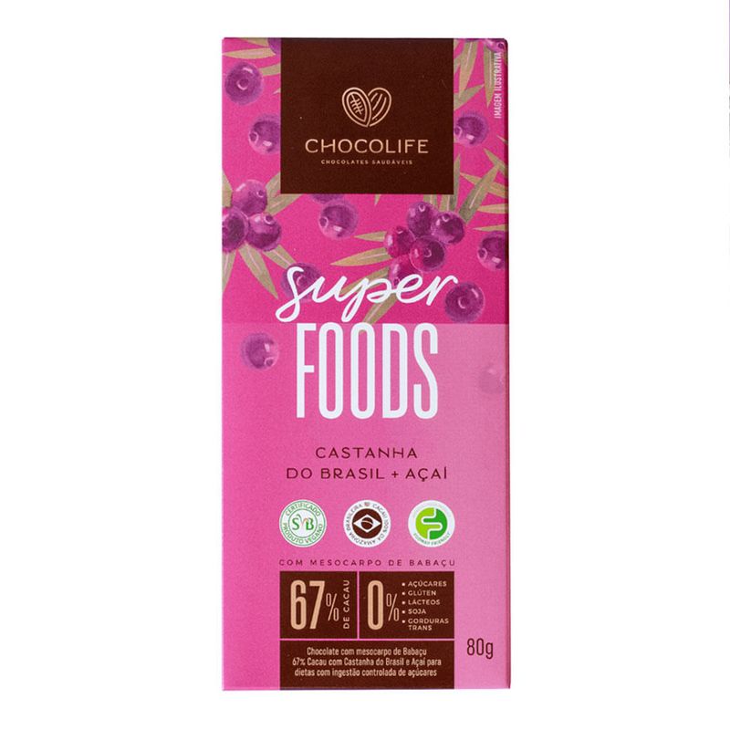 O Chocolate Super Foods de Castanha do Brasil e Açaí Chocolife é produzido com ingredientes naturais e cuidadosamente selecionados.