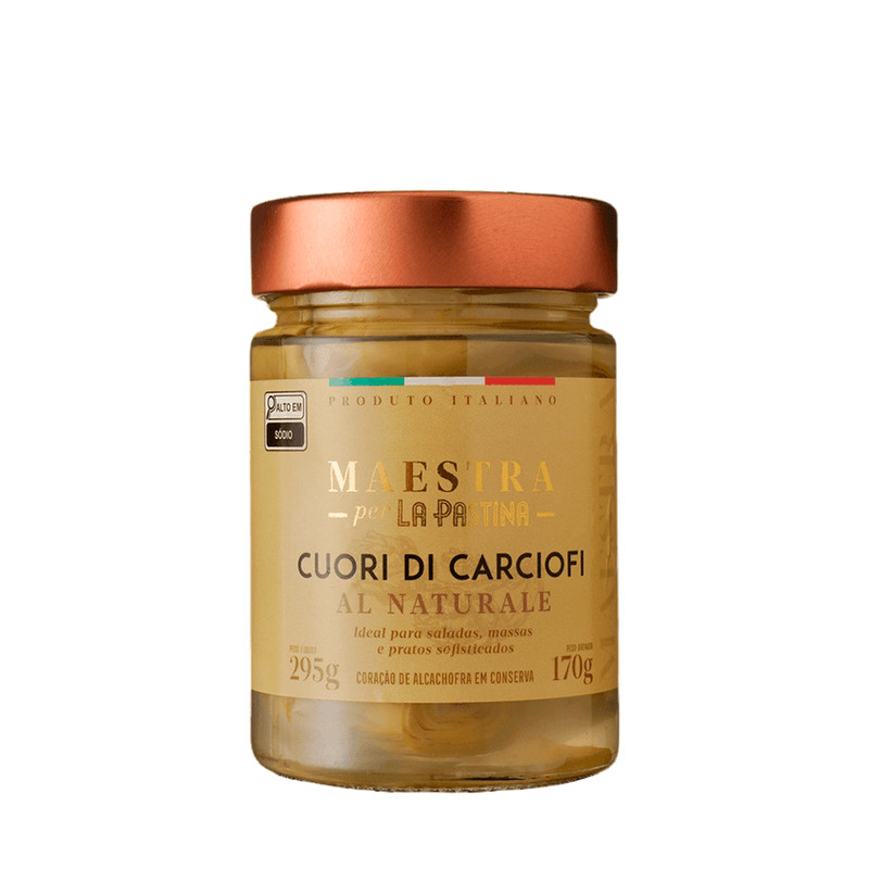 A Alcachofra Cuori di Carciofi al Naturale La Pastina Maestra traz corações de alcachofra selecionados, preservados em conserva natural para manter o sabor delicado e a textura macia. Ideal para antepastos, saladas, massas e pratos gourmet, oferecendo um toque refinado e leve à mesa.