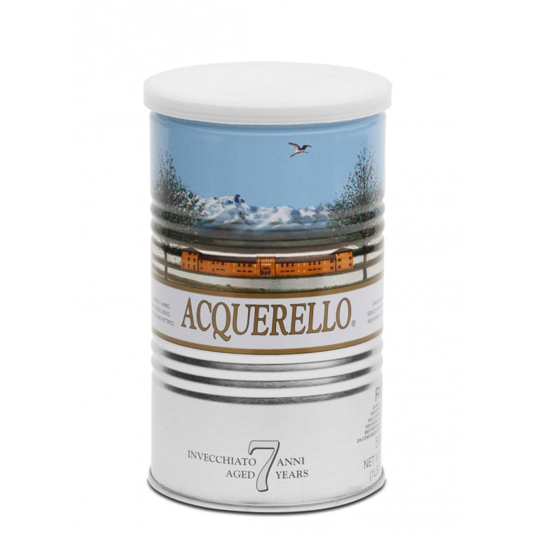 A planície de Vercelli é uma região historicamente dedicada ao cultivo do arroz. Imensas extensões de água criam uma paisagem mágica e encantadora que inspiraram numerosos artistas e poetas. É aqui que Acquerello é cultivado com todo o respeito pelo meio ambiente. Durante o cultivo, a água é mantida sempre alta. Isso permite manter um ecossistema delicado e a fauna típica do arrozal: rãs, libélulas e garças fizeram aqui a sua casa. A Acquerello une a simplicidade no cozimento do arroz branco com os elementos nutricionais mais importantes contidos apenas no arroz integral. São necessárias 20 passagens delicadas para chegar a obter o arroz Acquerello. A partir da hélice, ainda hoje considerado o melhor método para polir o arroz através da fricção dos grãos.
