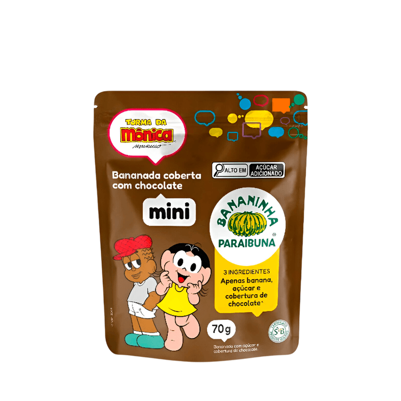A Bananinha Mini com Chocolate da Paraibuna Turma Mônica é uma opção prática e saborosa para lanches e momentos de diversão. Produzida com banana e açúcar, recebe uma deliciosa cobertura de chocolate, combinando o sabor natural da fruta com o toque doce do chocolate. Ideal para crianças e adultos, em embalagem de 70g, é perfeita para levar na bolsa ou mochila.