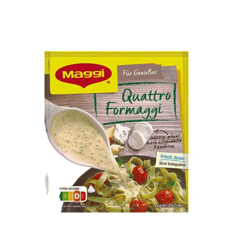 A Base de Molho Quatro Queijos Maggi é perfeita para quem busca praticidade e sabor na hora de cozinhar. Com uma combinação deliciosa de queijos cheddar, parmesão, queijo azul e mussarela, oferece um toque cremoso e irresistível a massas, carnes e legumes. Ideal para criar receitas com o autêntico sabor caseiro em poucos minutos.