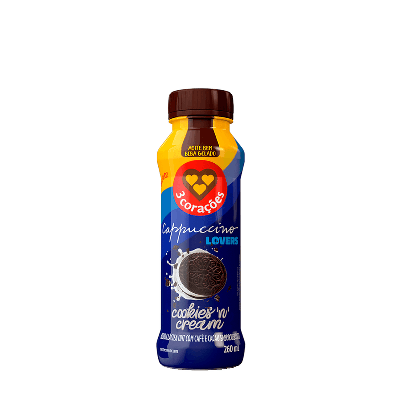 A Bebida Proteica Cappuccino Cookies Cream da 3 Corações combina sabor marcante de café com o toque doce e cremoso de cookies & cream. Com embalagem prática de 260ml, é ideal para quem busca energia e praticidade no dia a dia.