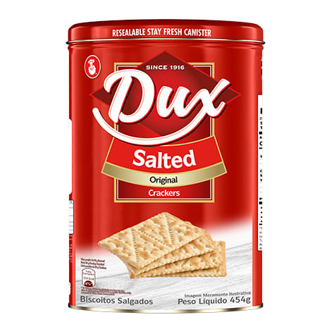Uma xícara de café ou chá fica perfeita acompanhada do Biscoito Cracker Original Dux, é crocante, saboroso e pode ser consumido puro ou com o recheio que você preferir.