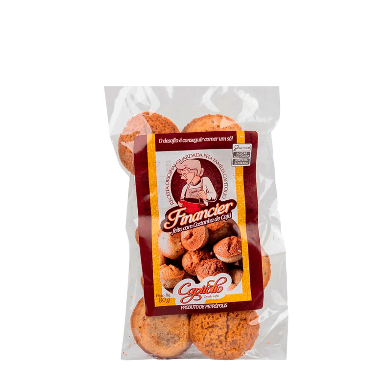O Biscoito Petit Four Financier é uma delicada iguaria da confeitaria, preparado com farinha de castanha de caju, farinha de trigo, manteiga e claras de ovo. Sua textura macia e sabor sofisticado tornam-no perfeito para acompanhar cafés, chás ou para ser servido em ocasiões especiais.