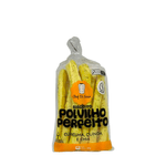 Ingredientes: Polvilho, leite de vaca integral, óleo de soja geneticamente modificada, ovo pasteurizado, semente de chia, semente de quinoa, sal, cúrcuma, açúcar e extrato de alecrim.
