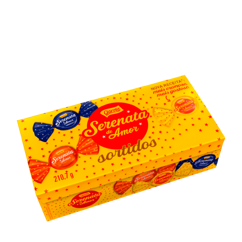 O Bombom Serenata de Amor Sortidos da Garoto é uma combinação deliciosa de sabores clássicos, com textura cremosa e sabor marcante de chocolate. Ideal para compartilhar em momentos especiais ou presentear quem você ama, vem em embalagem prática de 210,7g.