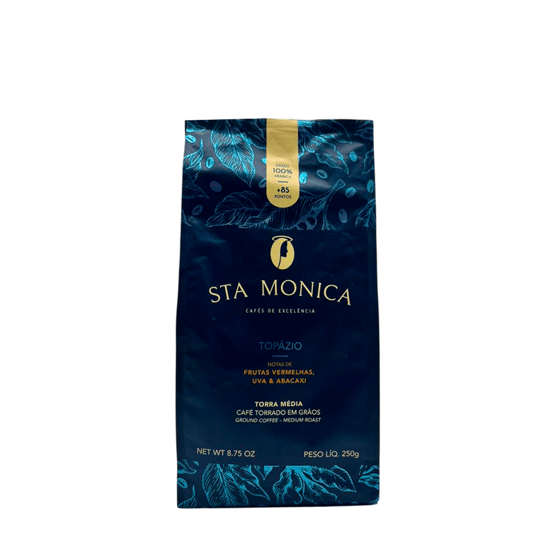 O Café Sta. Monica Topázio Grão é produzido com grãos 100% arábica, resultando em uma bebida equilibrada e aromática. Sua torra média realça notas suaves e um sabor refinado, ideal para quem aprecia um café de qualidade e tradição brasileira.