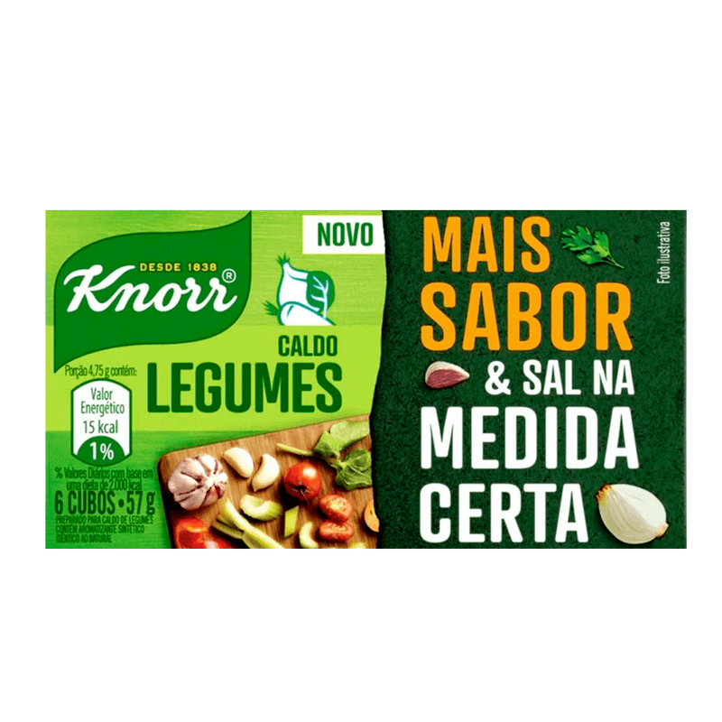 O Caldo de Legumes Knorr é perfeito para realçar o sabor de sopas, molhos, risotos e diversos pratos. Sua combinação de vegetais como cenoura, espinafre, alho-poró e abóbora proporciona um sabor natural e equilibrado, tornando o preparo das receitas mais prático e delicioso.
