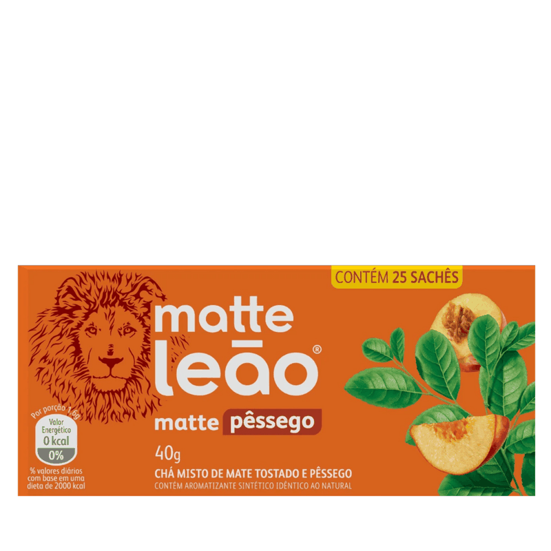 O Chá Mate Pêssego Leão combina a tradição do mate tostado com o toque frutado do pêssego, resultando em uma bebida saborosa e aromática. Prático e fácil de preparar, vem em embalagem com 25 sachês, ideal para quem busca sabor e praticidade no dia a dia.