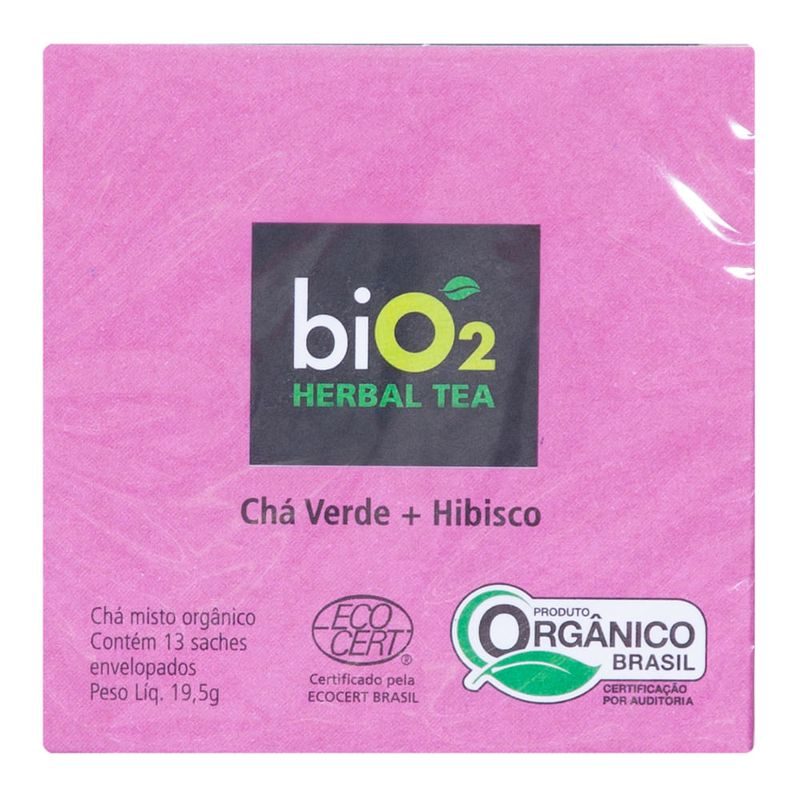 Ingredientes: Folhas e talos de cha verde orgânico (camella sinensis (L.) kuntze), flores de hibisco orgânico (hibiscus sabdariffa L.). Não contém glúten.