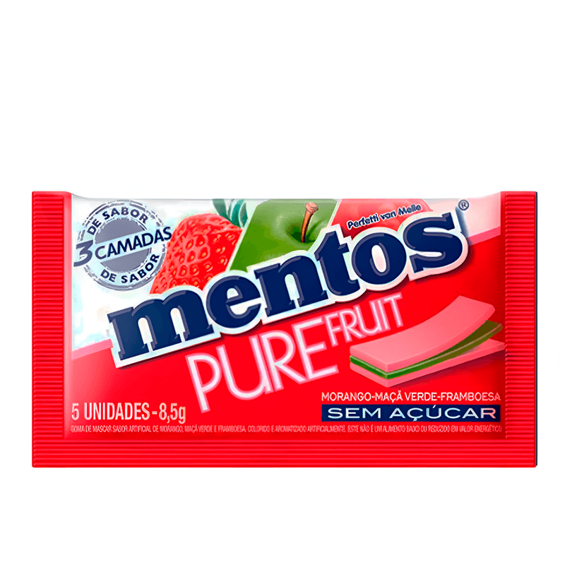 A Goma de Mascar Fruit Pure Mentos oferece uma explosão refrescante de sabores de frutas, ideal para quem busca um doce saboroso e sem glúten. Com uma combinação equilibrada de edulcorantes naturais e artificiais, proporciona sabor intenso e longa duração, perfeita para o dia a dia.