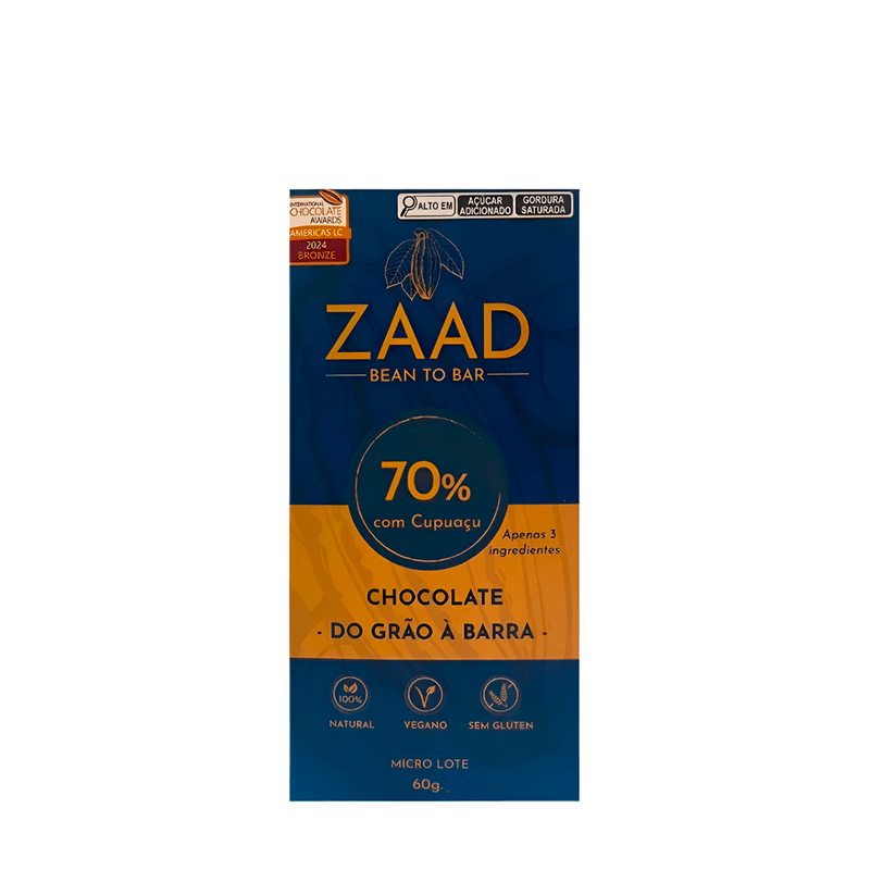 O Chocolate 70% Cacau com Cupuaçu da Zaad é produzido com cacau selecionado e açúcar demerara orgânico, oferecendo sabor intenso e sofisticado. Os pedaços de cupuaçu trazem um toque amazônico único, equilibrando a intensidade do chocolate com a suavidade frutada. Ideal para apreciadores de chocolates finos e de alta qualidade.