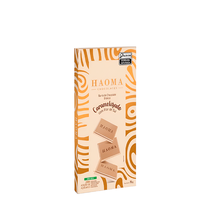 O Chocolate Branco Caramelizado com Flor de Sal da Haoma é uma combinação sofisticada que une a cremosidade do chocolate branco com o toque crocante e refinado da flor de sal. Produzido sem açúcar, sem glúten e sem lactose, é ideal para quem busca um doce mais equilibrado, sem abrir mão do sabor.