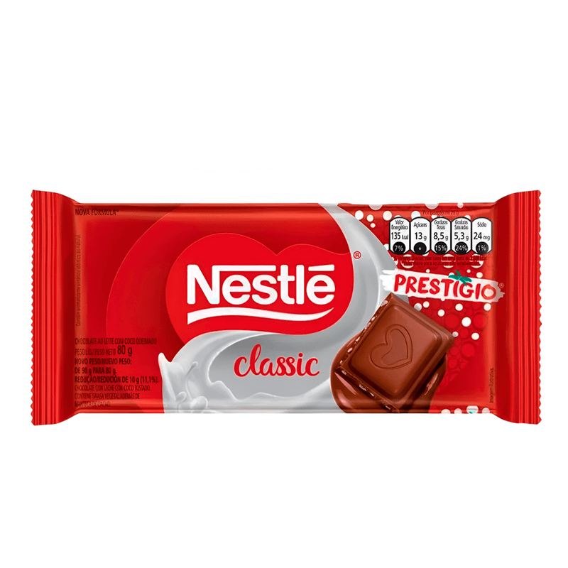 O Chocolate Classic Prestige da Nestlé combina o sabor marcante do chocolate ao leite com a textura inconfundível do coco ralado. Cremoso e indulgente, é ideal para os amantes de combinações clássicas e perfeitas, proporcionando um momento de prazer a cada pedaço.