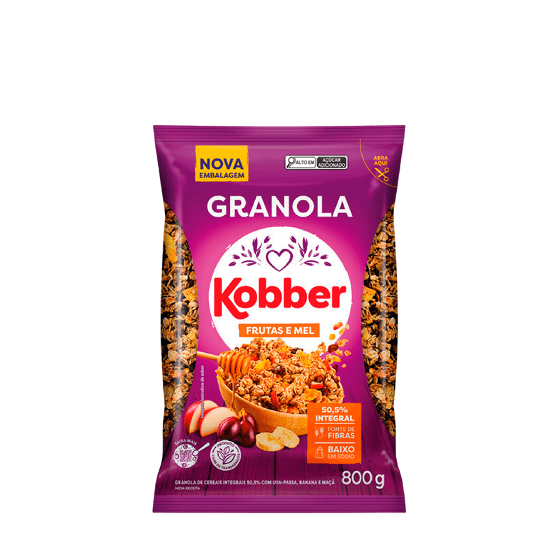 A Granola Frutas e Mel da Kobber é feita com cereais integrais e frutas desidratadas, proporcionando sabor, crocância e energia para o seu dia. Ideal para o café da manhã ou lanches saudáveis.