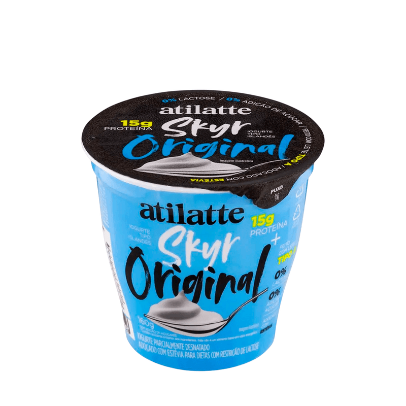 O Iogurte Original Skyr Atilatte é uma excelente fonte de proteína com textura densa e cremosa, inspirado na tradicional receita islandesa. Ideal para quem busca um lanche saudável e nutritivo, com baixo teor de gordura e sem adição de glúten.