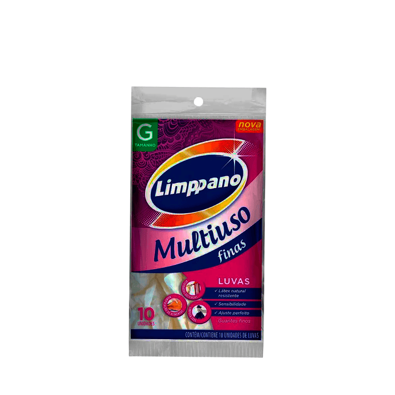 A Luva Doméstica Finas Limppano é confeccionada em látex 100% natural, garantindo resistência, flexibilidade e conforto para o uso diário em tarefas domésticas. Ideal para proteger as mãos durante a limpeza, lavação de louças e cuidados com o lar.
