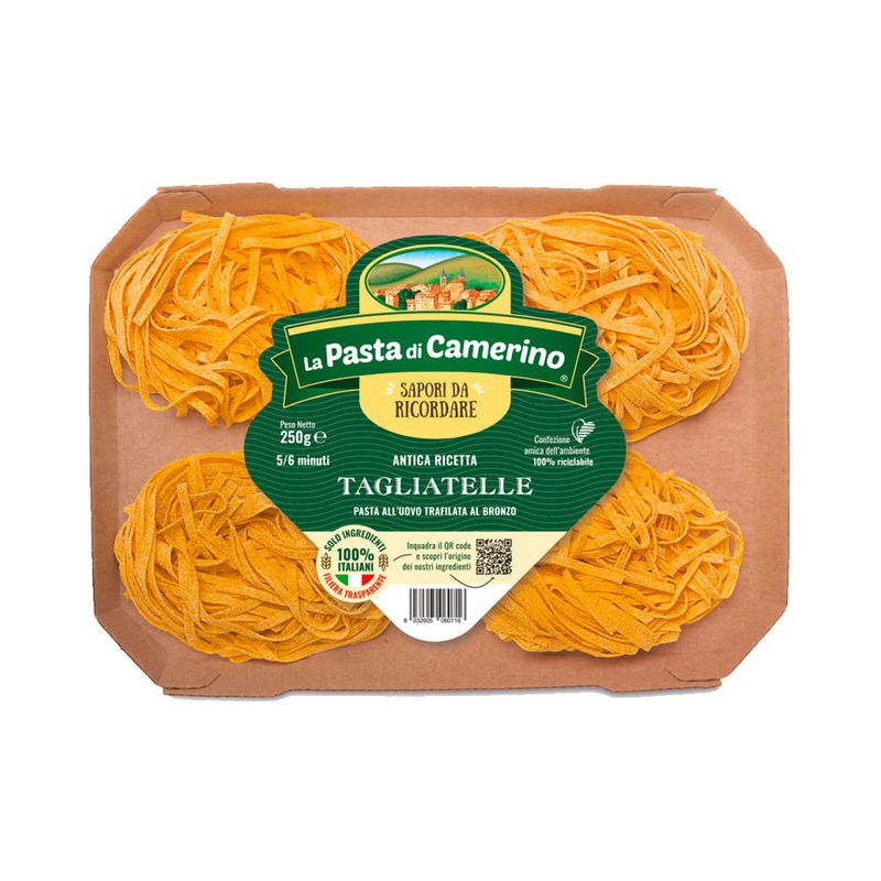 O Macarrão de Sêmola Tagliatelle La Pasta Di Camerino é elaborado apenas com ingredientes de primeira qualidade e graças à sua folha porosa captam na perfeição os molhos densos e encorpados, devolvendo todo o sabor intenso do prato na degustação.