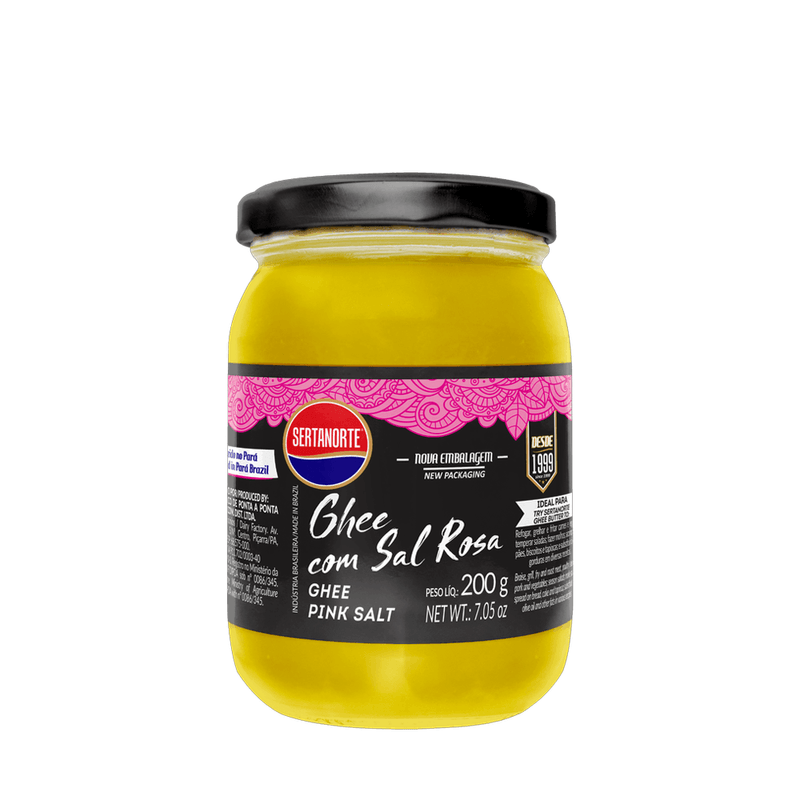 A Manteiga Ghee Sem Lactose com Sal Rosa da Sertanorte é produzida a partir da manteiga clarificada, resultando em um produto de alta qualidade, saboroso e mais saudável. O sal rosa do Himalaia acrescenta um toque especial, equilibrando o sabor e reduzindo a quantidade de sódio em relação ao sal comum. É ideal para preparo de pratos, finalizações ou para ser consumida no dia a dia como uma alternativa diferenciada.
