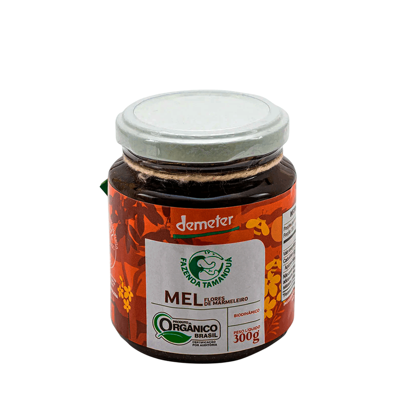 O Mel de Marmeleiro Faz Tamanduá é produzido a partir de floradas selecionadas, resultando em um sabor suave e levemente adocicado. Com origem biodinâmica, é 100% natural e preserva todas as propriedades nutritivas do mel puro, sendo ideal para adoçar bebidas, acompanhar pães, torradas e receitas especiais.