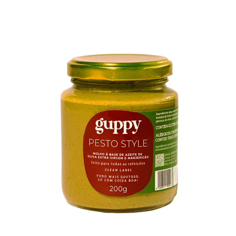 O Molho Pesto Style Guppy é uma releitura moderna do clássico pesto, com sabor marcante e ingredientes selecionados. Elaborado com manjericão fresco, azeite de oliva extra virgem e queijo parmesão, é ideal para massas, sanduíches, saladas e receitas criativas, trazendo praticidade e um toque gourmet ao dia a dia.