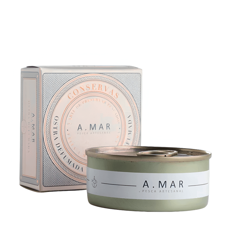 A Ostra Defumada A.MAR é preparada com ostras selecionadas, defumadas e conservadas em azeite de oliva, resultando em um sabor marcante e sofisticado. Ideal para entradas, aperitivos e composições gourmet.