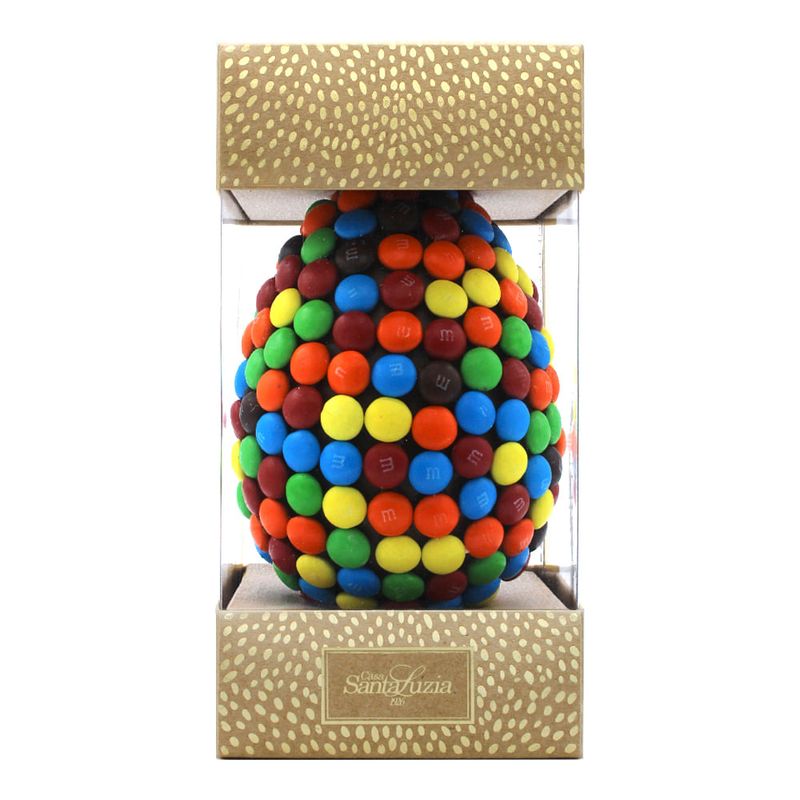 Os Ovos de Chocolate da Casa Santa Luzia são perfeitos para você presentear alguém especial ou até você mesmo. Contamos com uma linha completa de sabores diferenciados para a época mais doce do ano. Um delicioso ovo de páscoa elaborado com a combinação de chocolate belga ao leite (41% cacau) e branco (26% cacau), coberto com confeitos de M&Ms.