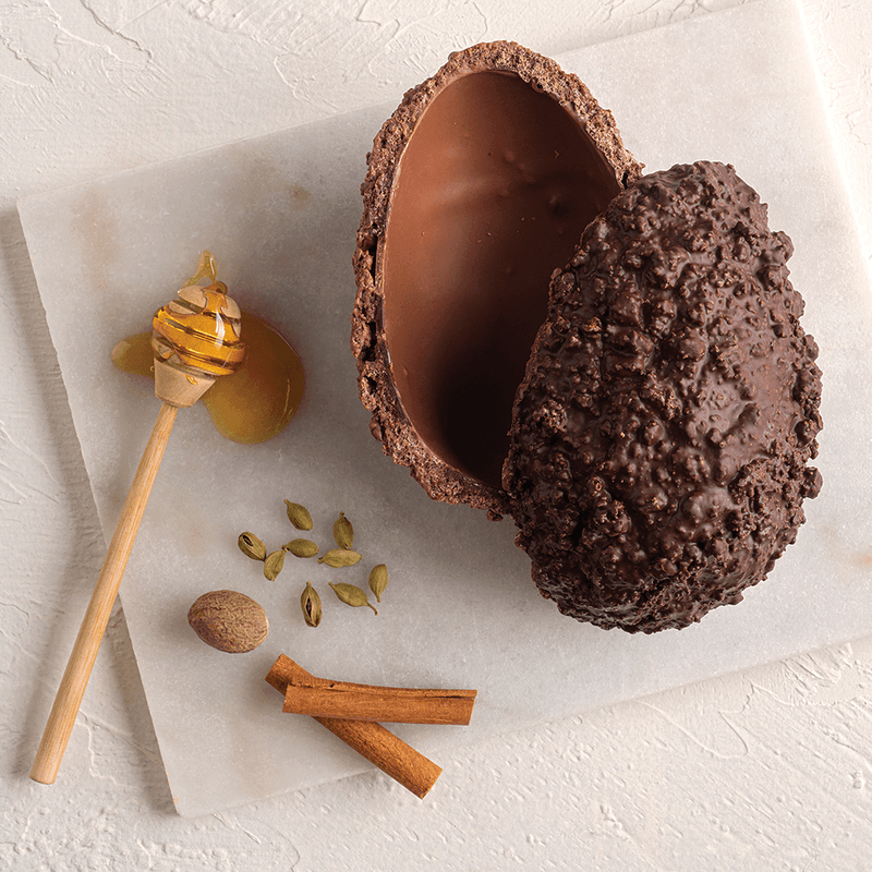 Um dos itens mais vendidos e adorados, o Ovo Crocante Pão de Mel, além de agradar aos amantes da combinação do mel com canela, cravo, cardamomo e noz-moscada, permite ter essa experiência de sabor e muita crocância em 2 tipos de chocolate: uma casca elaborada com chocolate belga ao leite (41% cacau) e outra com a versão de chocolate meio-amargo (54% cacau). É para realmente provar e provar de novo e quem sabe conseguir escolher a banda preferida.