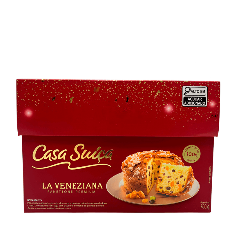 O La Veneziana Panettone Premium Casa Suiça é uma combinação refinada de sabores, perfeito para celebrações especiais. Sua massa macia é enriquecida com uvas-passas, damascos e ameixas, além do toque crocante das amêndoas e da castanha-de-caju, garantindo uma experiência sofisticada e inesquecível. Uma escolha premium que une tradição e requinte.