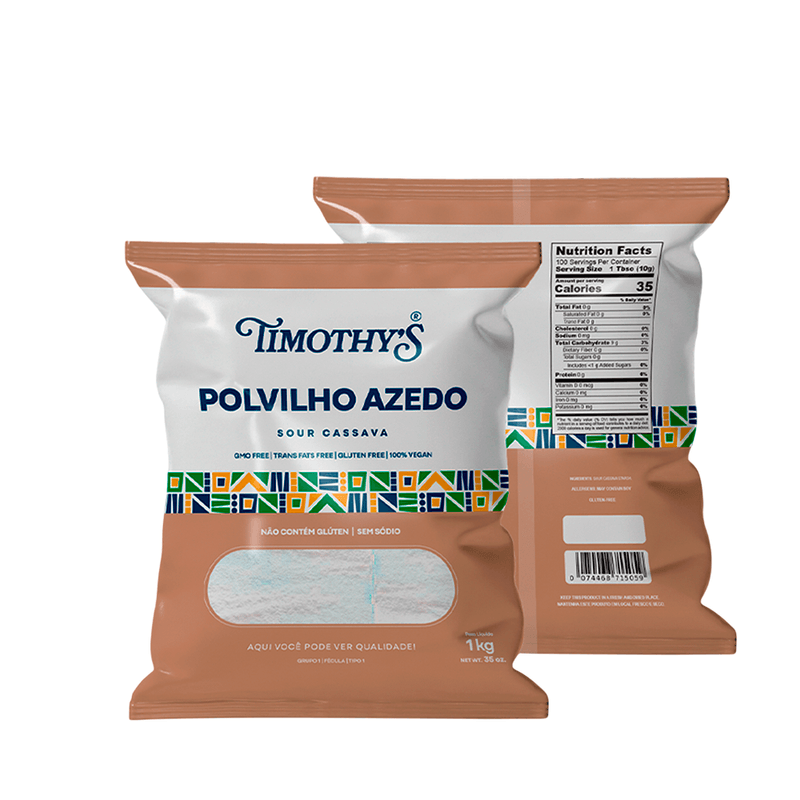 O Polvilho Azedo Timothy's é ideal para o preparo de receitas tradicionais como pão de queijo, biscoitos e massas leves. Produzido a partir da mandioca, proporciona textura aerada e excelente desempenho culinário. Embalagem de 1kg, perfeita para uso doméstico ou profissional.