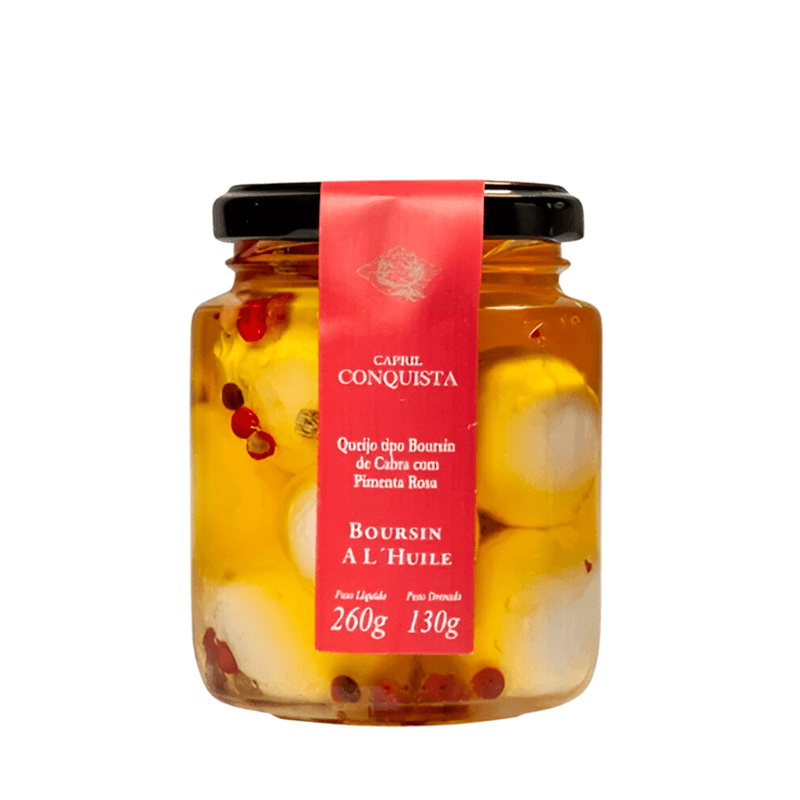O Queijo de Cabra Boursin Pasta Rosa da Capril Conquista é uma pasta cremosa e sofisticada, elaborada com leite de cabra pasteurizado e temperada com pimenta rosa, que confere sabor delicado e aromático. Ideal para acompanhar pães, torradas, crackers e receitas gourmet, é uma excelente opção para quem busca um queijo diferenciado e sem glúten.