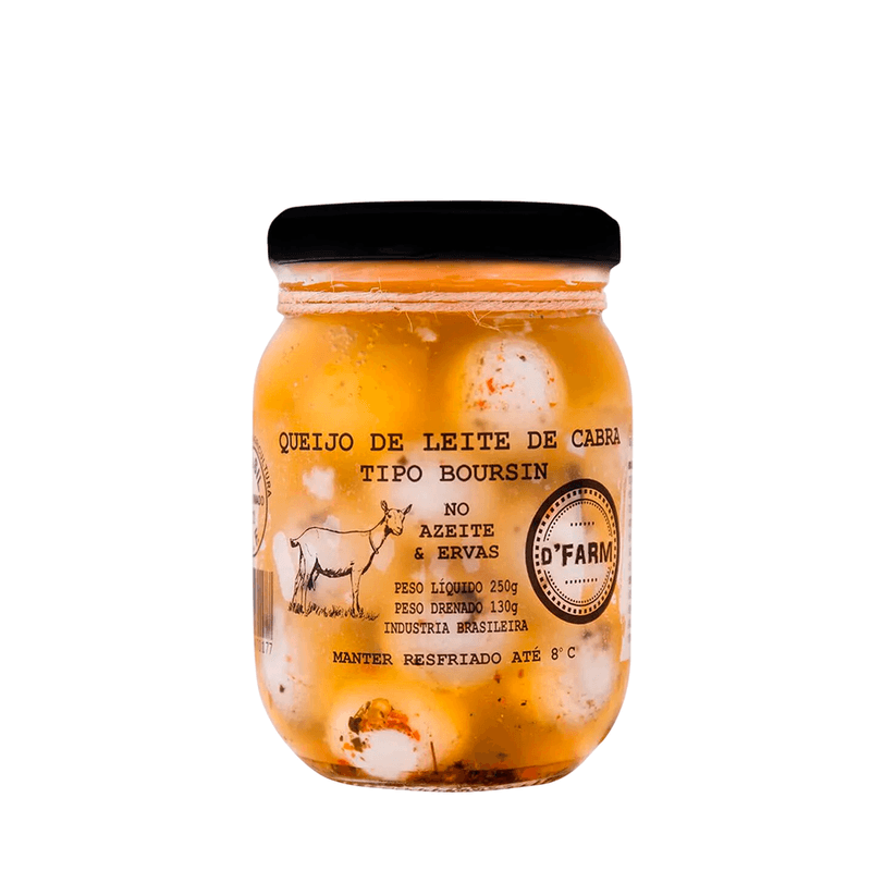 O Queijo de Cabra Azeite e Ervas D'Farm é cremoso, aromático e cheio de personalidade. Elaborado com leite de cabra pasteurizado, azeite de oliva e uma combinação especial de ervas finas, como orégano e alecrim, além do toque sofisticado da pimenta rosa. Ideal para servir com pães, torradas, tábuas de queijos ou como ingrediente em receitas refinadas.