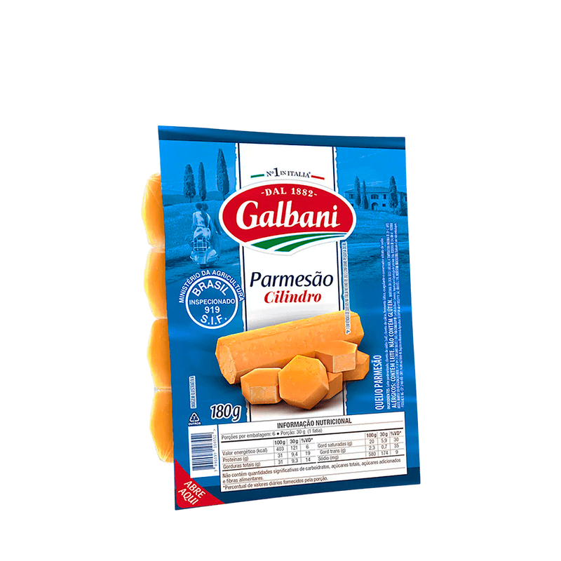 O Queijo Parmesão Cilindro da Galbani é elaborado com leite pasteurizado e passa por um processo de maturação que garante sabor intenso, aroma marcante e textura firme. Ideal para ralar, fatiar ou finalizar massas, risotos, saladas e diversas receitas, é um ingrediente clássico e versátil para o dia a dia.