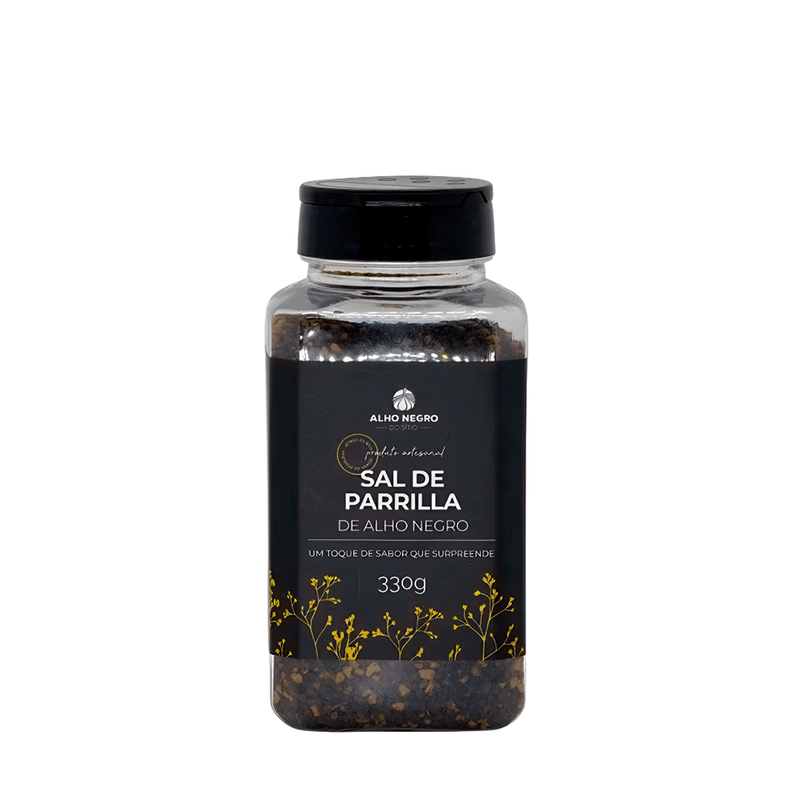 O Sal Parrilha Alho Negro é uma combinação sofisticada que une o sabor intenso do alho negro com a crocância do alho frito, trazendo um toque especial para grelhados, carnes e diversos pratos. Ideal para quem busca um tempero diferenciado e marcante.