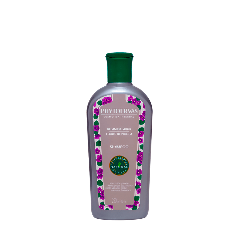 O Shampoo Desamarelador Flores de Violeta Phytoervas ajuda a neutralizar tons amarelados em cabelos loiros, grisalhos ou descoloridos, mantendo a cor vibrante e saudável. Enriquecido com extratos de lavanda, alecrim e violeta, sua fórmula combina ativos hidratantes, condicionantes e protetores, promovendo maciez, brilho e cuidado completo dos fios.