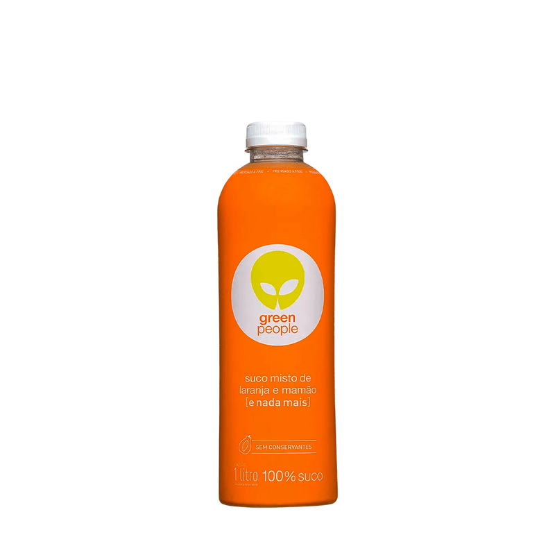 O Suco de Laranja e Mamão Greenpeople é elaborado com frutas selecionadas, combinando o frescor da laranja com a suavidade do mamão para uma bebida leve e nutritiva.