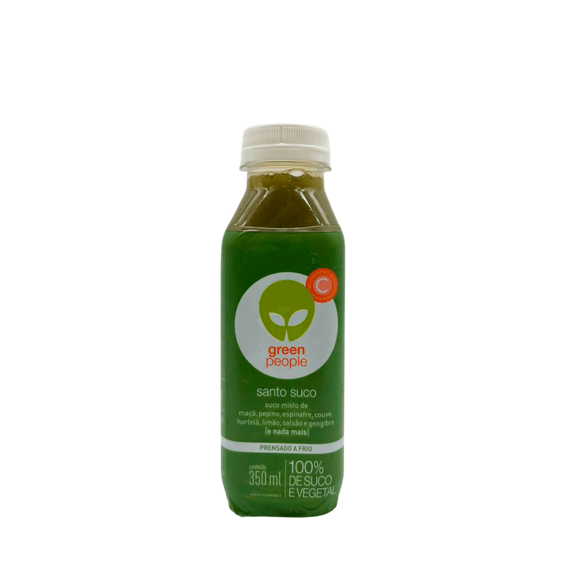 O Suco Santo Greenpeople é uma bebida natural, prensada a frio, que combina frutas e vegetais frescos em uma receita equilibrada e revigorante. Elaborado com maçã, pepino, espinafre, couve, hortelã, limão, salsão e gengibre, oferece frescor e leveza em cada gole.