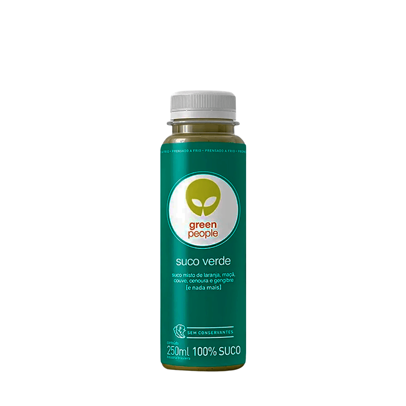 O Suco Verde Greenpeople combina frutas e vegetais prensados a frio, resultando em uma bebida nutritiva e equilibrada, rica em sabor e vitaminas naturais.