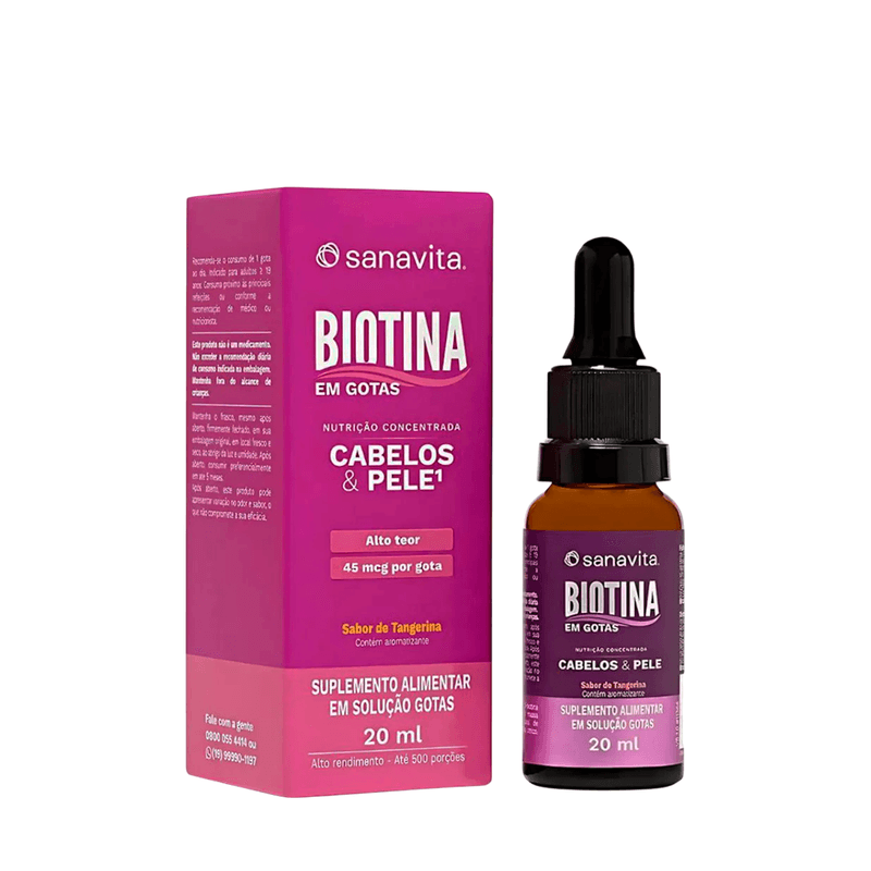 O Suplemento Alimentar de Biotina Naturelle – 20ml é formulado com vitamina B7, também conhecida como biotina, essencial para o metabolismo energético e para a manutenção da saúde da pele, cabelos e unhas. Sua composição inclui água, glicerol como agente de massa, aromatizante natural de tangerina e acidulante ácido clorídrico, proporcionando praticidade no consumo diário.